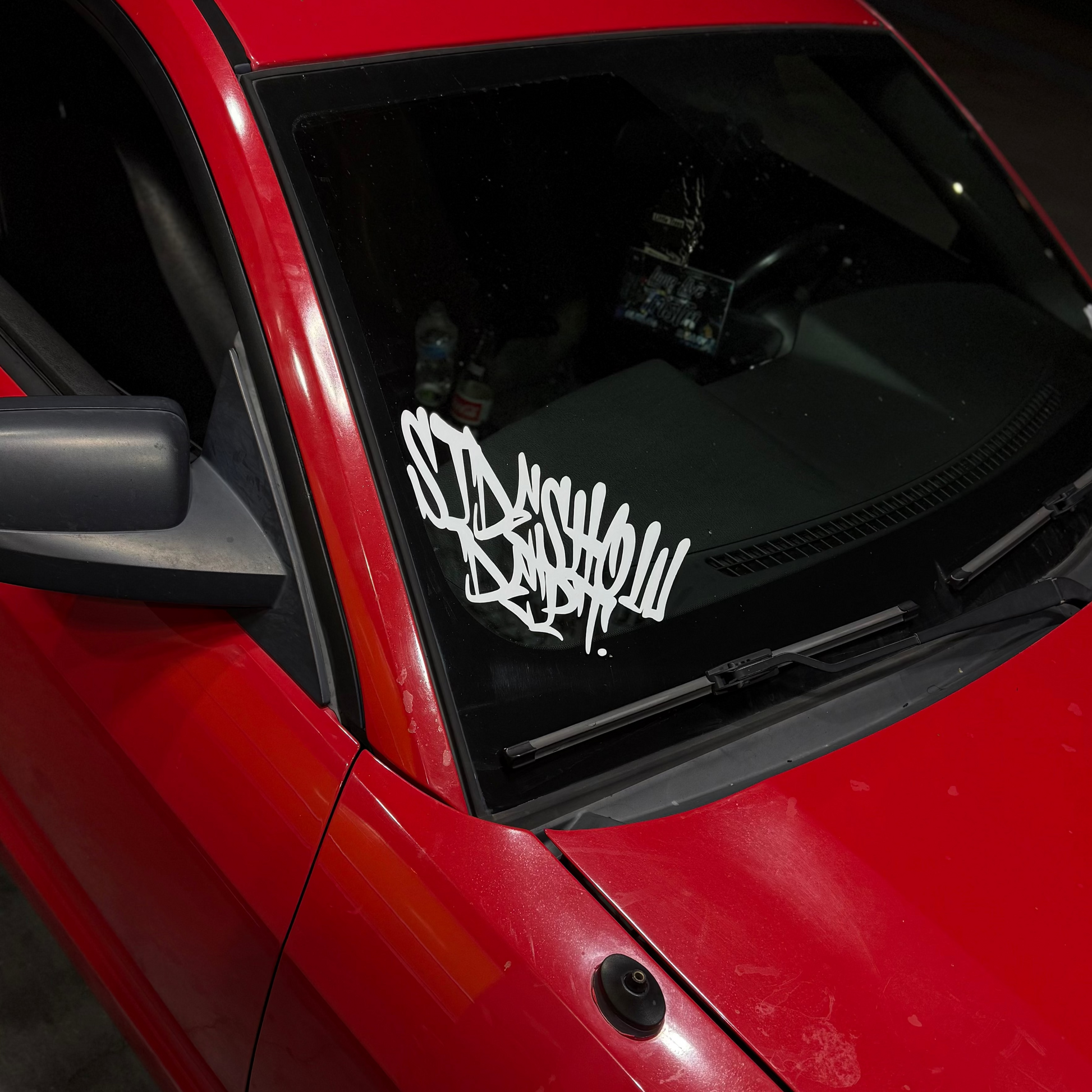 Clean, simple, and made to sit mean on your windshield. This SideshowDept. corner decal is cut from high-quality white vinyl and sized just right at 11.5” x 8.75” to fit perfectly in the corner of your front or rear glass.